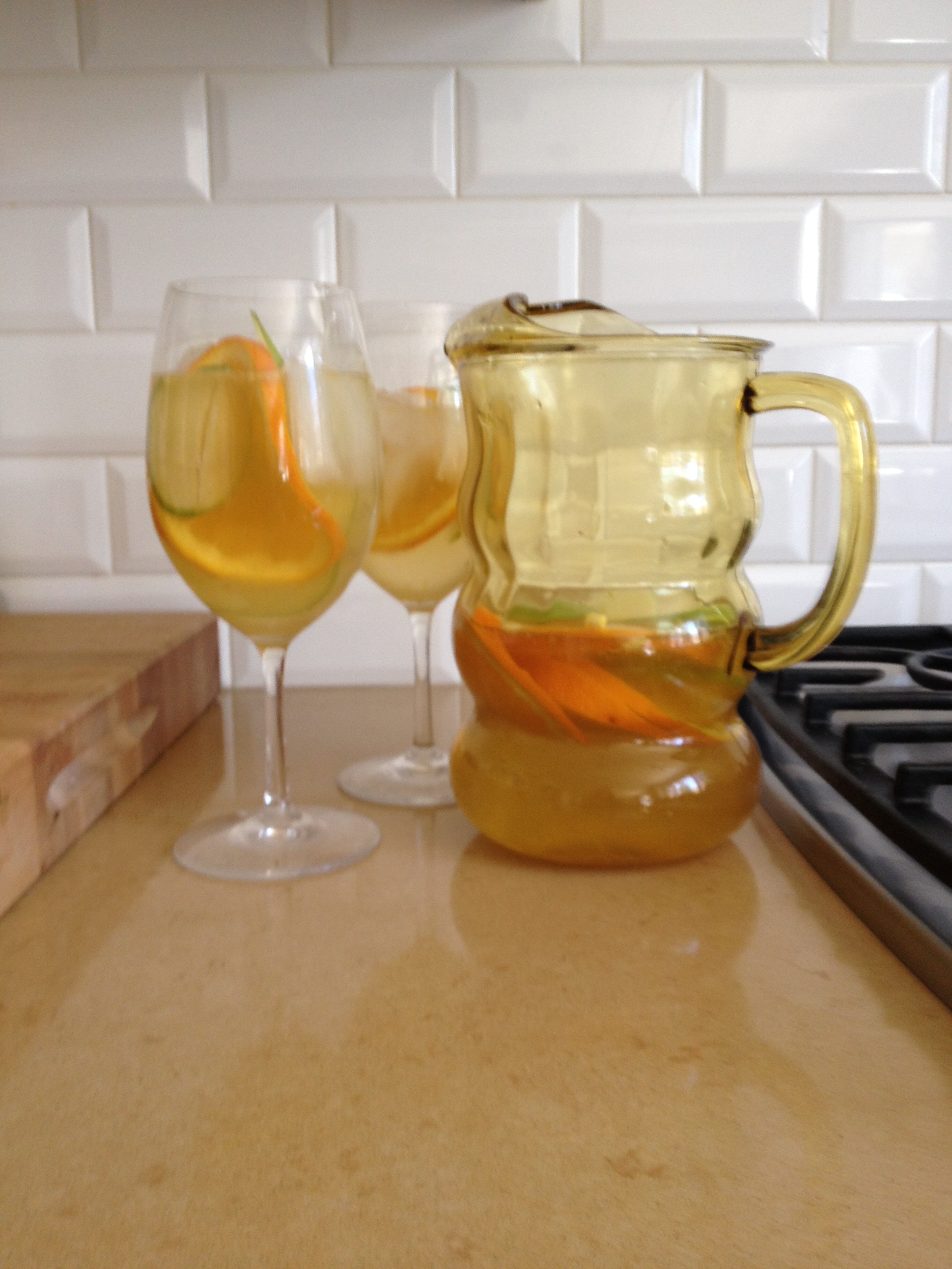 This weeks drink started out as a sangria with Apples and Pears. My kid ate the pear. I am too lazy to go to the store for one pear. It also has a moscato wine. I didn’t have a bottle of that in my wine drawer so I am making  an Orange ginger sangria. Life is always evolving. Don’t stress just go with the flow and mix it up.